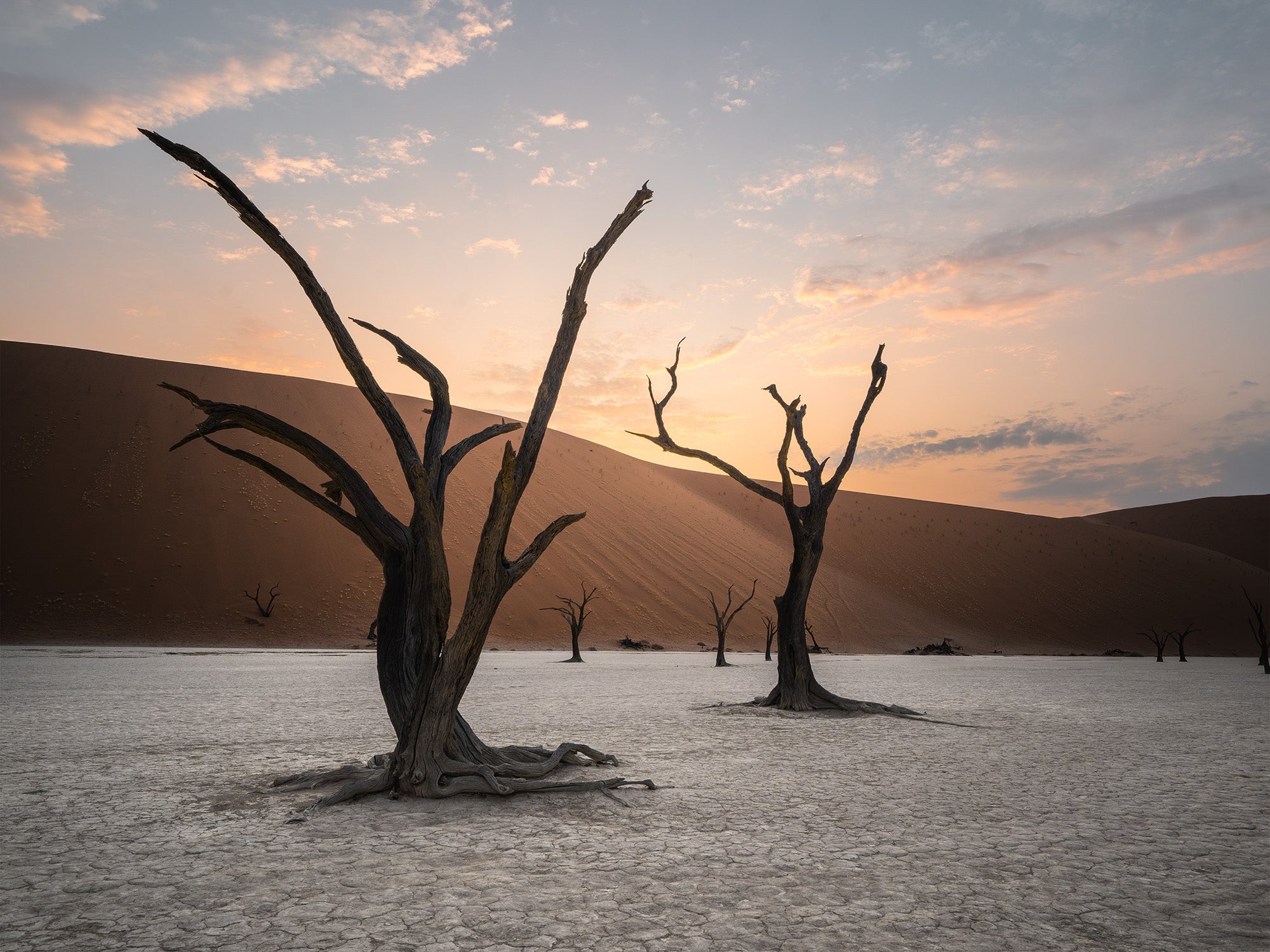 Fahrt nach Deadvlei (+- 1 Stunde vor bzw. nach Sonnenaufgang bzw. Untergang) für Fotografie und Sonnenuntergang und Blue Hour über den gigantischen Dünen der Namib.