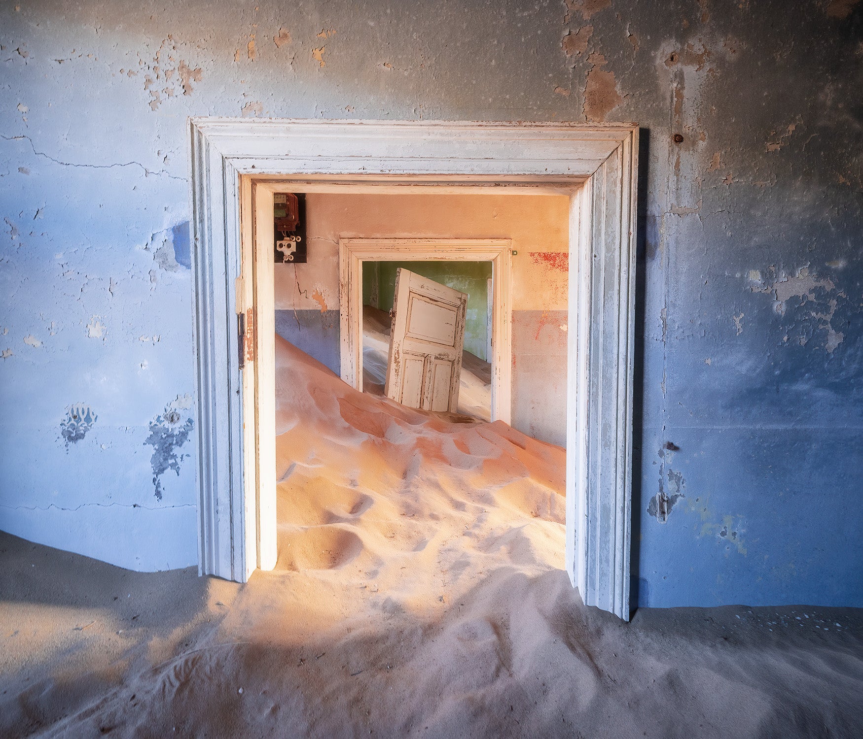 Entdecken Sie die vom Sand zugewehte Geisterstadt Kolmanskop. Klettern