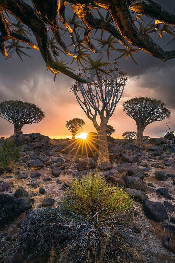 Genießen und fotografieren Sie einen wundeschönen Sonnenuntergang im Köcherbaumwald.