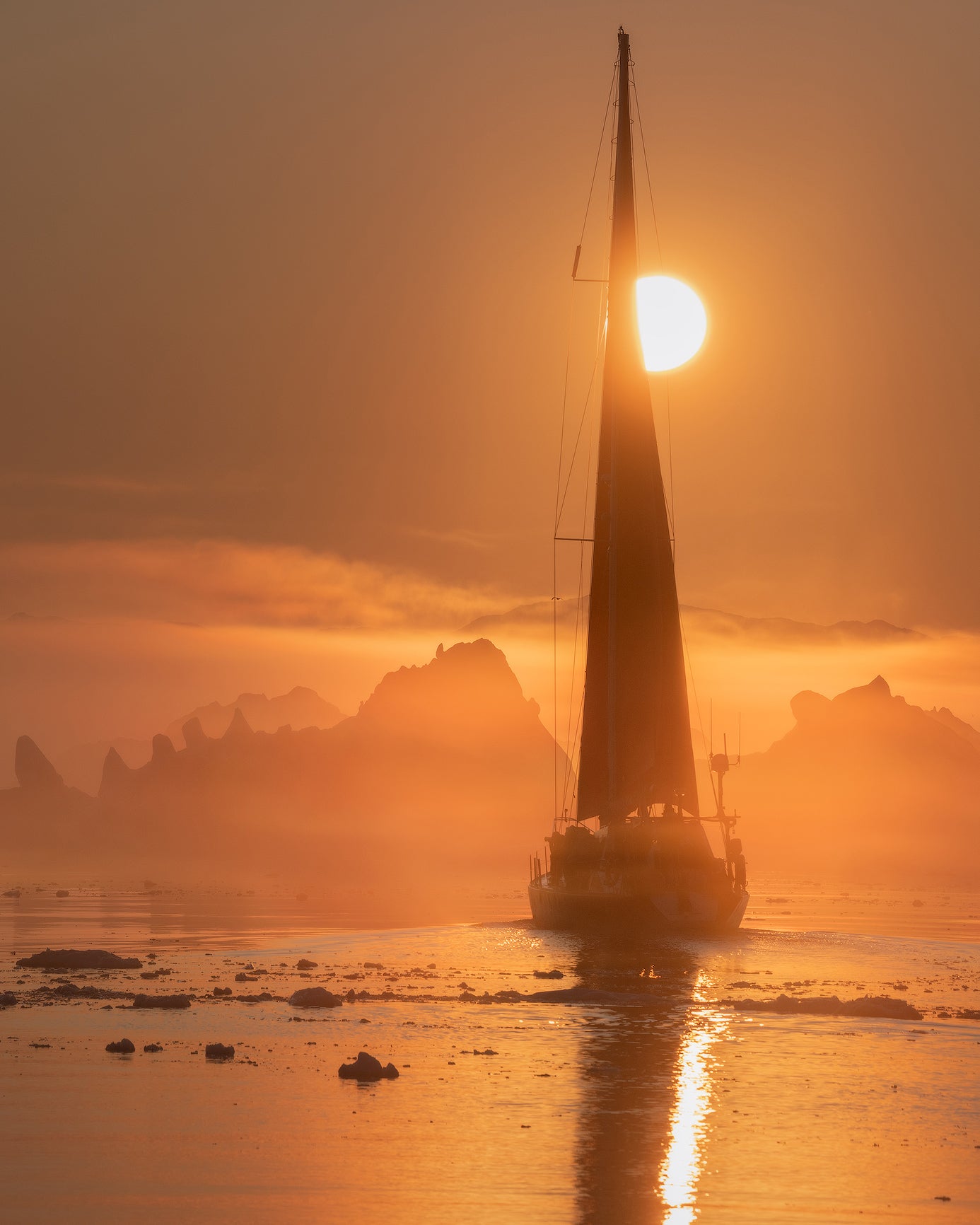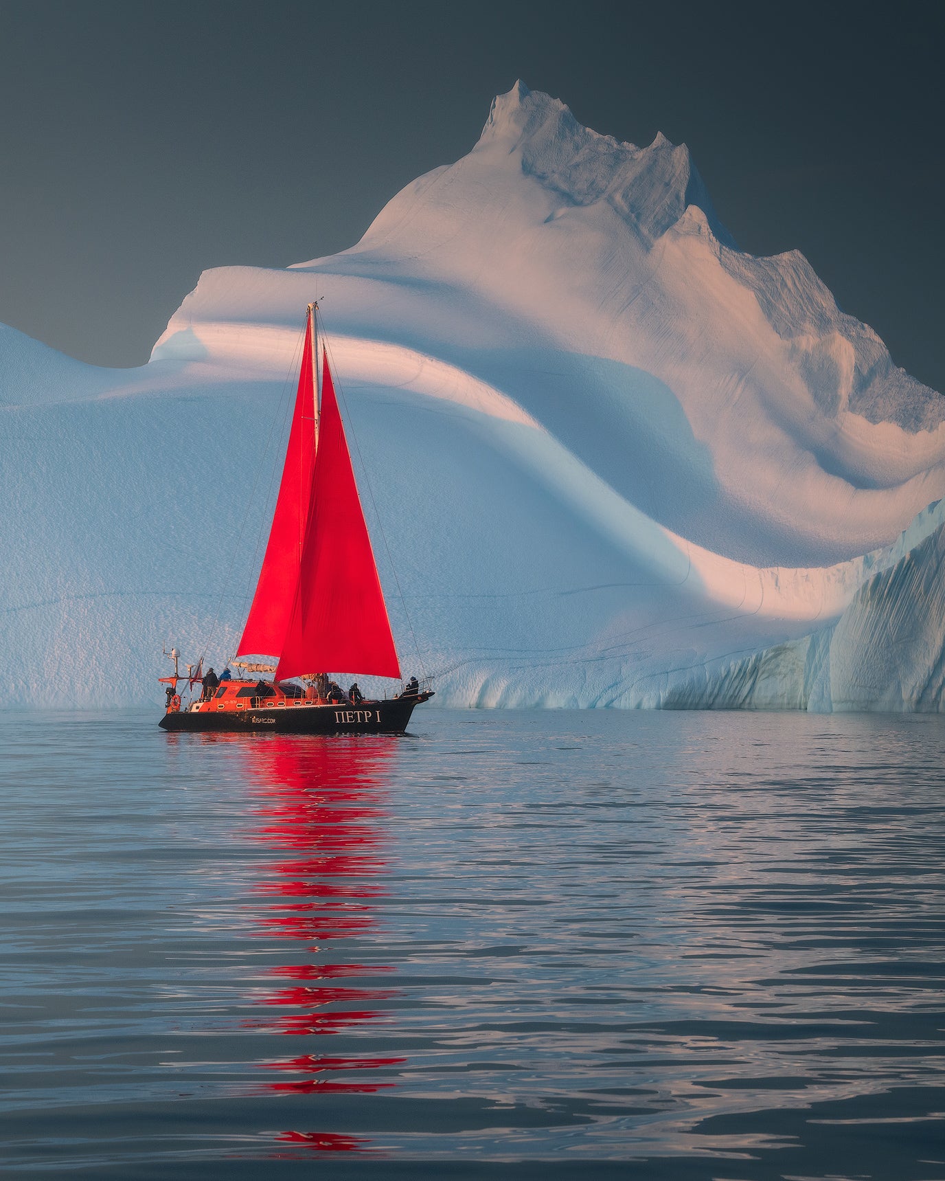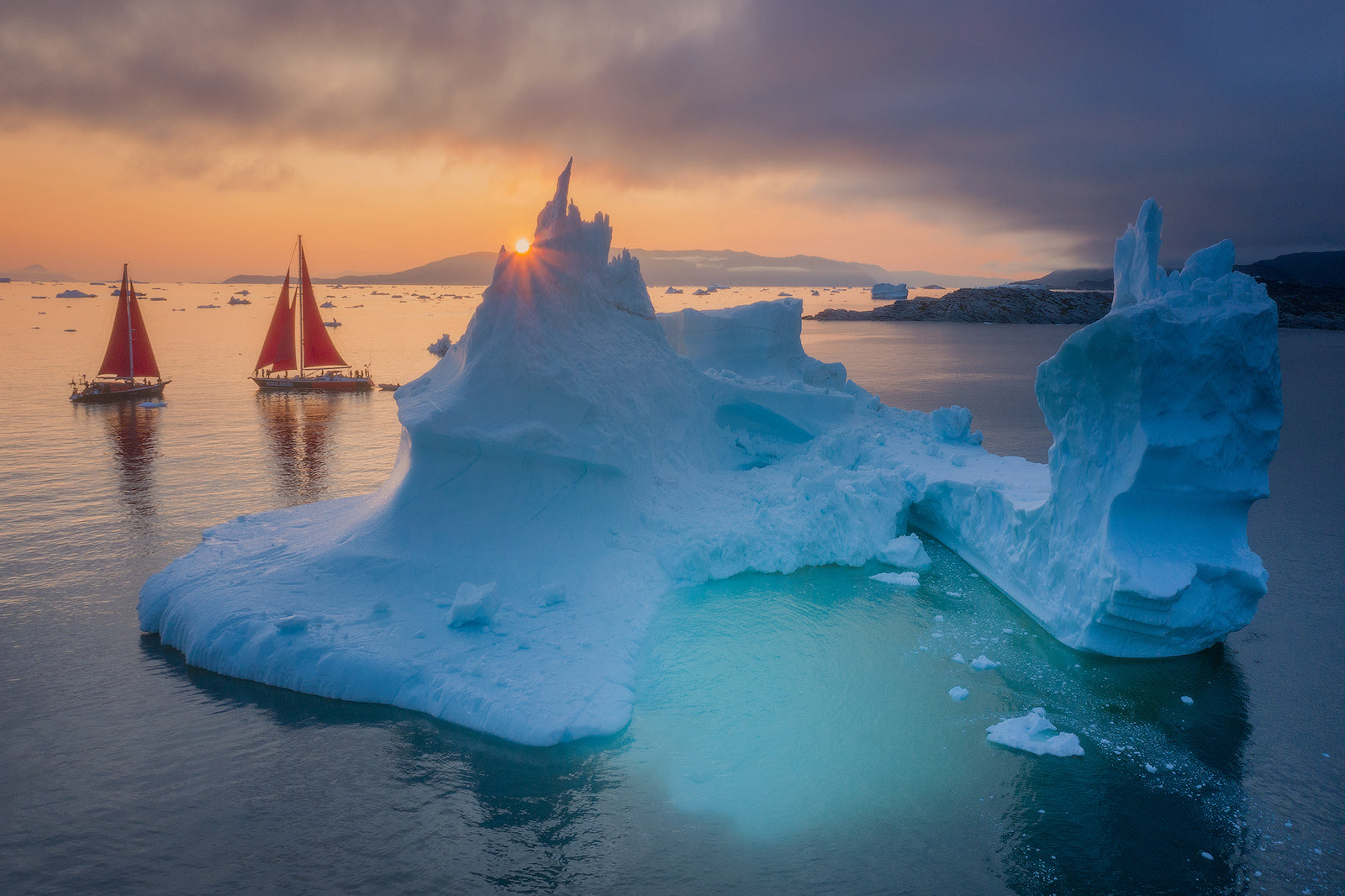 Die Dörfer Grönlands sind schlecht durch Landwege miteinander verbunden. Hier bieten die natürlichen Wasserwege die besten Routen. Aus diesem Grund werden wir für unser gesamtes Abenteuer ein privates Segelboot chartern. Die Kombination aus leuchtend roten Segeln und der eisigen Umgebung schafft einen starken visuellen Fokus. Auf unserer Reise werden wir mehrere grönländische Siedlungen besuchen, darunter Qasigiannguit, Aasiaat und Oqaatsut.