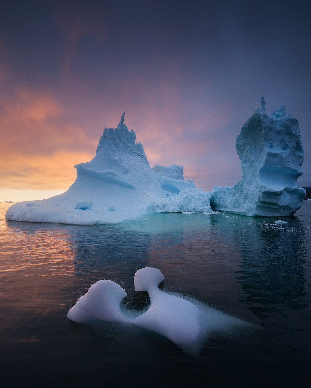 Nach einer weiteren langen Nachtsession kehren wir zurück in unser Hotel in Ilulissat, um uns dort gemütlich auszuschlafen. Nach dem Frühstück widmen wir uns der Bildbearbeitung. Am Abend bereiten wir uns auf eine weitere Nacht auf dem Wasser vor. Kurz vor Mitternacht setzen wir erneut die Segel und umrunden den Eis Fjord auf der Suche nach den besten Bildkompositionen und Lichtverhältnissen. Das Gebiet gehört schließlich zum UNESCO-Weltkulturerbe und ist daher auf jeden Fall einen Besuch wert. Nach mehreren Stunden auf der wellenlosen Weite kehren wir zum Hafen zurück.